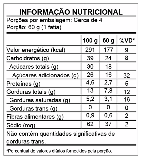 farinha de trigo enriquecida com ferro e ácido fólico, óleo de soja, açúcar cristal,