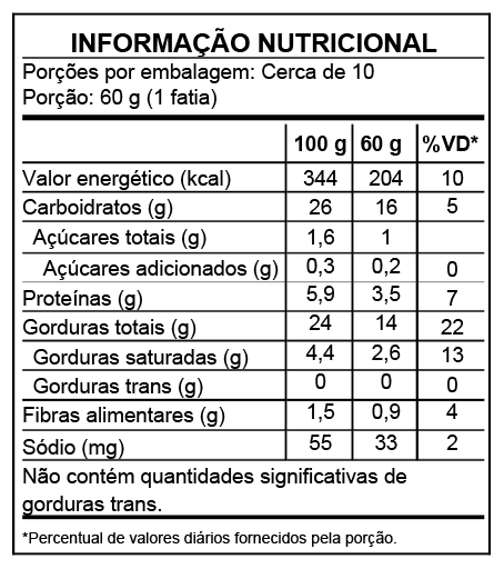 Leite integral, óleo de soja, ovo, farinha de milho, farinha de trigo enriquecida com ferro e ácido fólico, queijo minas meia cura (leite pasteurizado integral, fermento lático, cloreto de sódio, cloreto de cálcio (INS 509), corante natural de urucum(INS 160b), coagulante quimosina), adoçante culinário (maltodextrina). ALÉRGICOS: CONTÉM LEITE, OVOS E TRIGO. CONTÉM DERIVADOS DE SOJA. PODE CONTER AVEIA, CENTEIO, CEVADA ETRITICALE.CONTÉM LACTOSE. CONTÉM GLÚTEN.